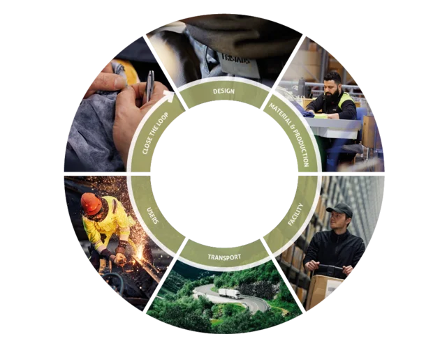 Globální změna klimatu a zhoršování životního prostředí jsou výzvy naší doby a textilní průmysl musí přispět svým dílem k ochraně planety. Ve společnosti Fristads jsme odhodláni snižovat naši ekologickou stopu od okamžiku, kdy oděv navrhujeme, až do konce jeho životnosti. Stanovili jsme si ambiciózní cíl snížit do roku 2030 emise skleníkových plynů o 50% a chceme stát v čele změn v oděvním průmyslu.