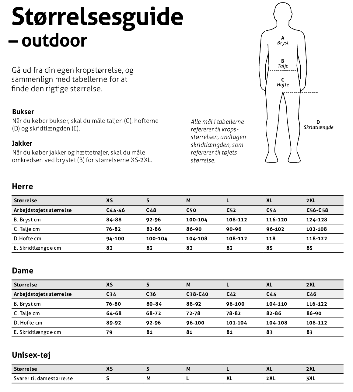 Størrelsesguide Fristads Outdoor