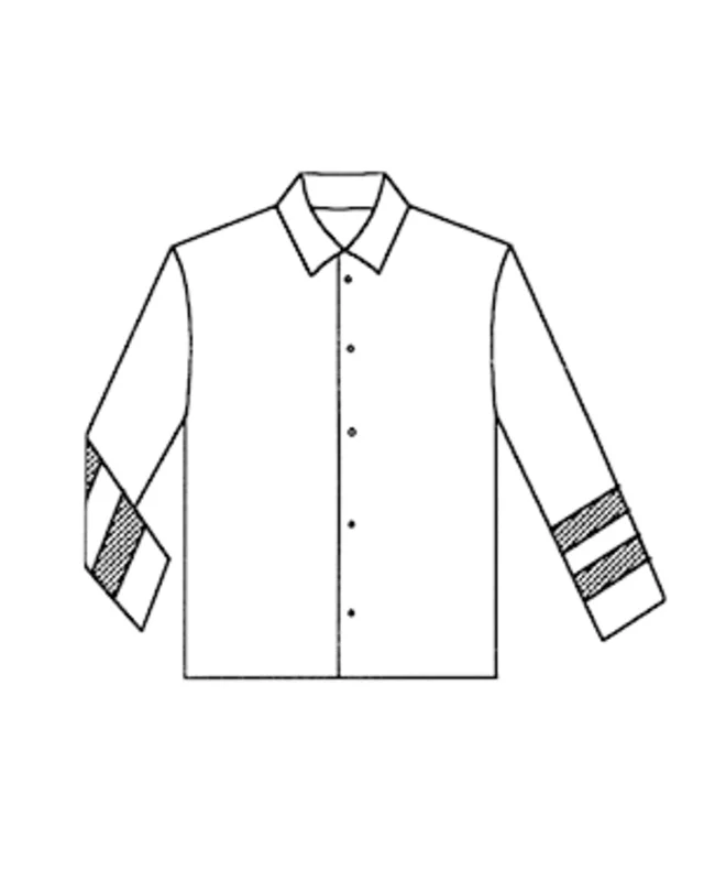 Am fertigen Kleidungsstück können gegen Aufpreis Reflexstreifen aufgebracht werden (siehe Abbildung). Die Reflexstreifen sind in den Farben 70 Gelb, Code: 129 und 95 Silbergrau, Code: 106 verfügbar.