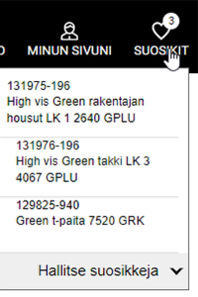 Ja paina "Hallitse suosikkeja". Löydät Suosikit-osion ostoskorin vierestä.