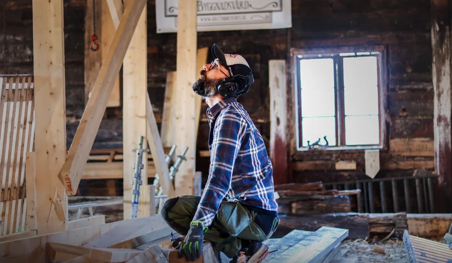 Ekologisen ideologian mukaisesti rakentava Jussi Niemi pukeutuu Fristadsin Green-mallistoon.