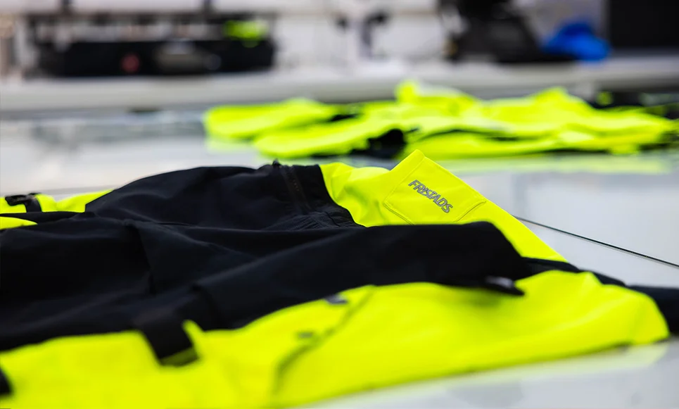 Työvaatteet eivät ole pelkästään kestäviä – ne ovat tärkeä osa työntekijöiden turvallisuutta ja työskentelymukavuutta. Työvaatteet joutuvat kestämään äärimmäisiä olosuhteita, tämän vuoksi materiaalit käyvät läpi tarkkoja laboratoriotestejä, ja lisäksi itse tuotteille suoritetaan käyttäjätestejä toimivuuden ja kestävyyden varmistamiseksi. Nykyään ympäristöystävällisyys on myös keskeinen osa työvaatteiden valmistusta, ja vastuullisesti tuotettujen ja kierrätettyjen materiaalien määrä markkinassa kasvaa. Fristads on jo vuodesta 2019 saakka käyttänyt kierrätettyjä materiaaleja työvaatteissa.
