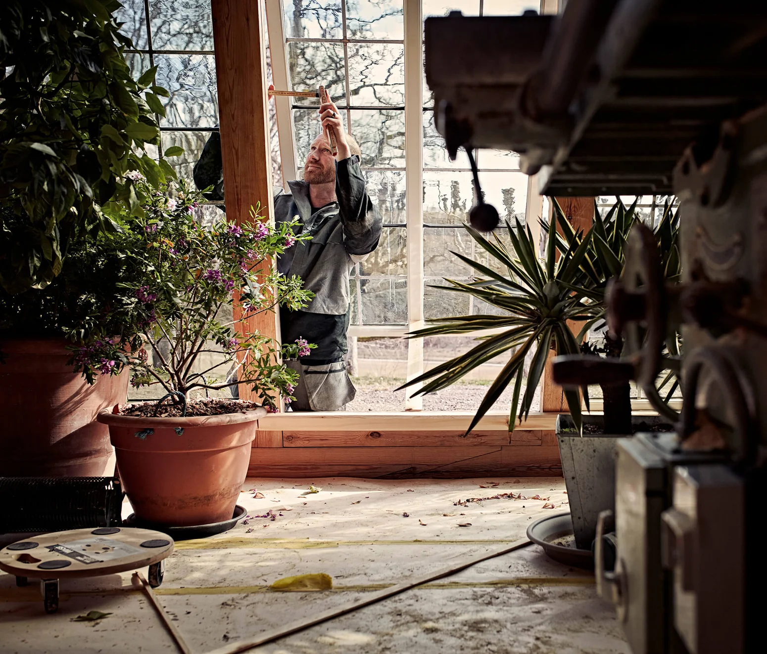 «Å rekonstruere orangeriet har lenge vært en drøm», sier Andreas før han legger bort verktøyene og avslutter nok en dag på jobb.