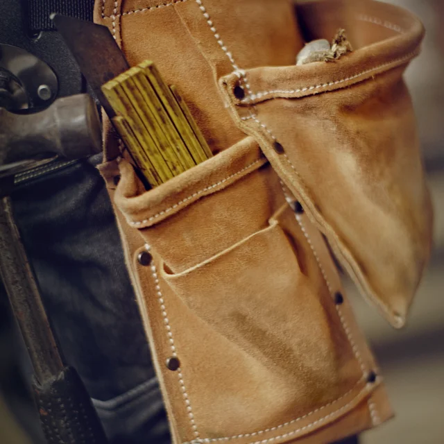 Alle de svarte verktøybeltene, materiallommene og holderne våre er produsert i Sverige. Disse produktene er laget av spesialutviklet mykt lær med en slitesterk og vannavvisende overflate.